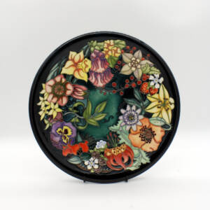 In 2014, tubeliner Gill Johnson, submitted a striking interpretation of indigenous Australian art. Nothing like it had emerged from the kilns before. An especially unusual collection, Papunya features a kangaroo, a ducked-billed playtpus, a snake and an echidna as stylized black silhouettes on a yellow ground, surrounded by Aboriginal inspired dotted swirls.