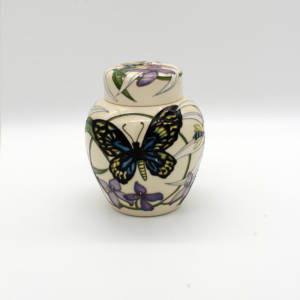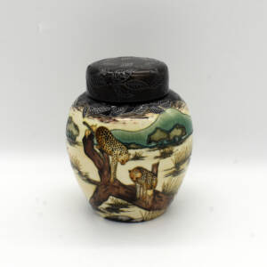 The sugar glider is a small, omnivorous, arboreal, nocturnal gliding possum belonging to the marsupial infraclass. The common name refers to its preference for sugary goods like sap and nectar and its ability to glide through the air, much like a flying squirrel. Vicky’s design flows around this vase and features sugar gliders foraging for nectar as night envelops the Australian sky.